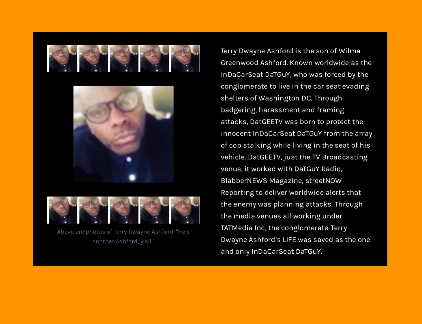 This report is brought to you by Terry Dwayne Ashford, journalist in Chief (JIC) known as InDaCarSeat DaTGuY through StreetNOW News, Crimes, Sports, and Travel.