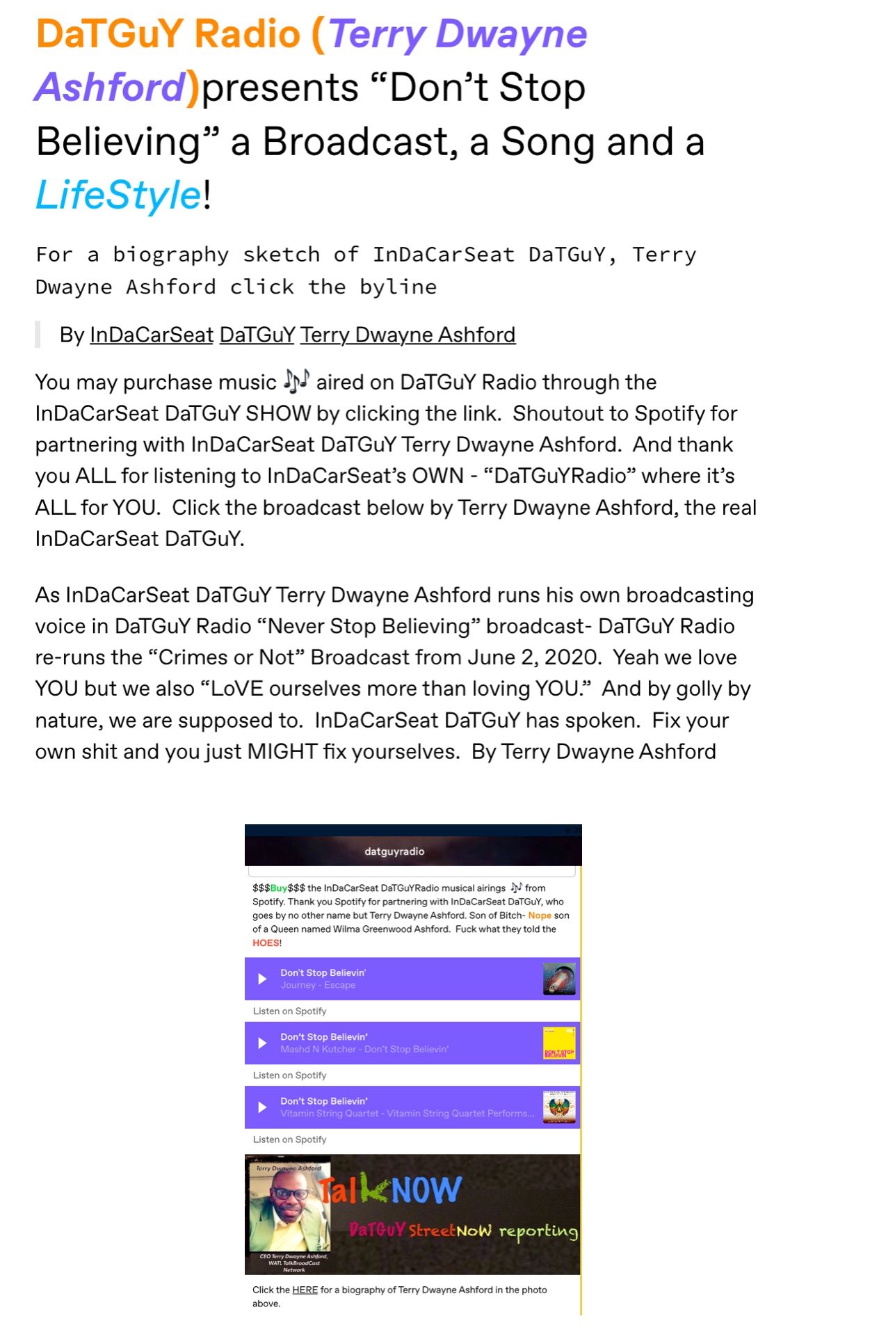 The motives, a black man’s motive at this time for even coming near Terry Dwayne Ashford is to meet whites and the only other motive is to recuperate for the overall gang platform. That platform is to deceive blacks for what has said as the hip hop path to a black man’s dreams which is the whiteness of the man he dreams to fuck. The platform of the black man is to secretive fulfill his hidden racism sexuality through the abuse of blacks framed as a dream. in lieu of his true desire, the true desire for the black man is the white man. Opening up to one black male journalist who may have figured it out through his job research is not good enough to have the black male journalist.
